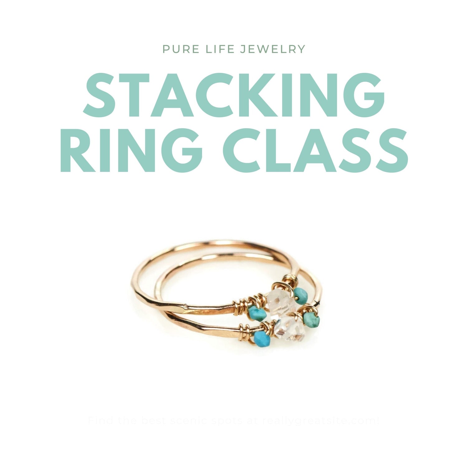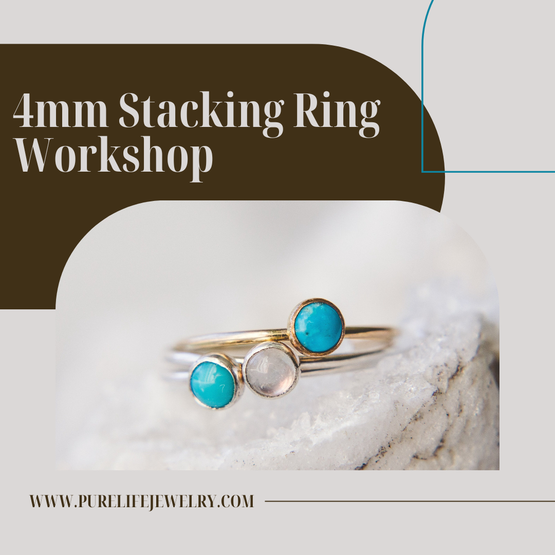 Create your own 4mm dainty stone stacking ring. The class includes one stacking ring, with the option to purchase additional rings.