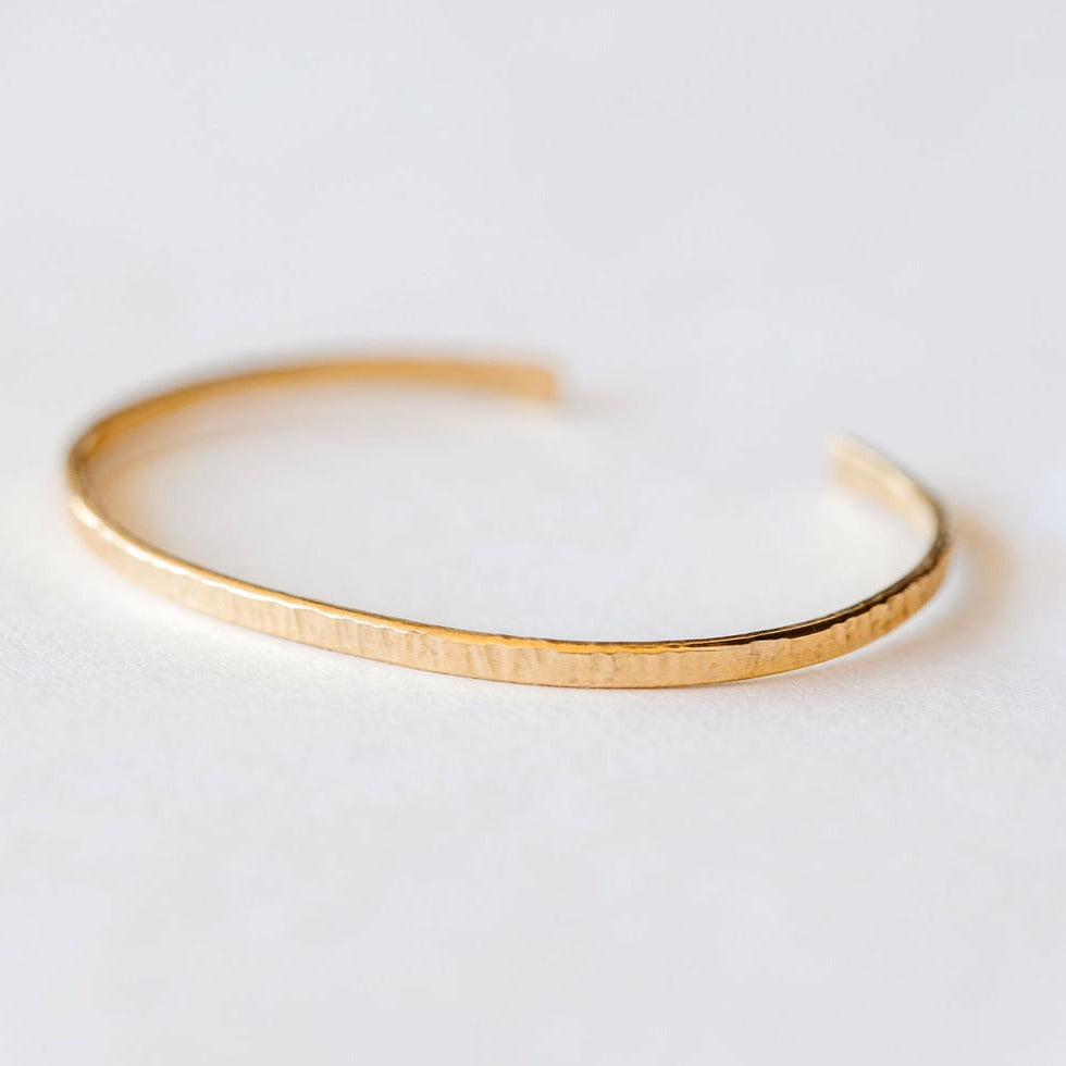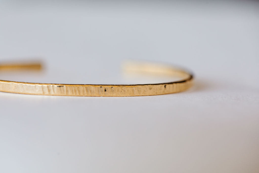 A handcrafted textured cuff made by hand with a matte finish. Make this cuff part of your daily stack. Bracelets are made to fit medium-sized wrists & are easily adjustable.
